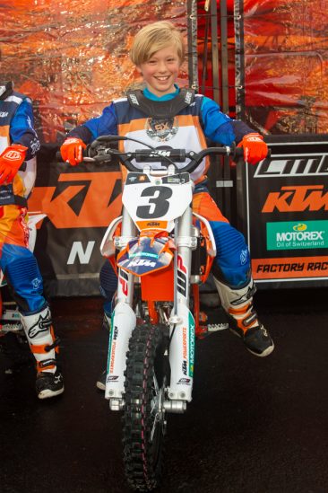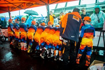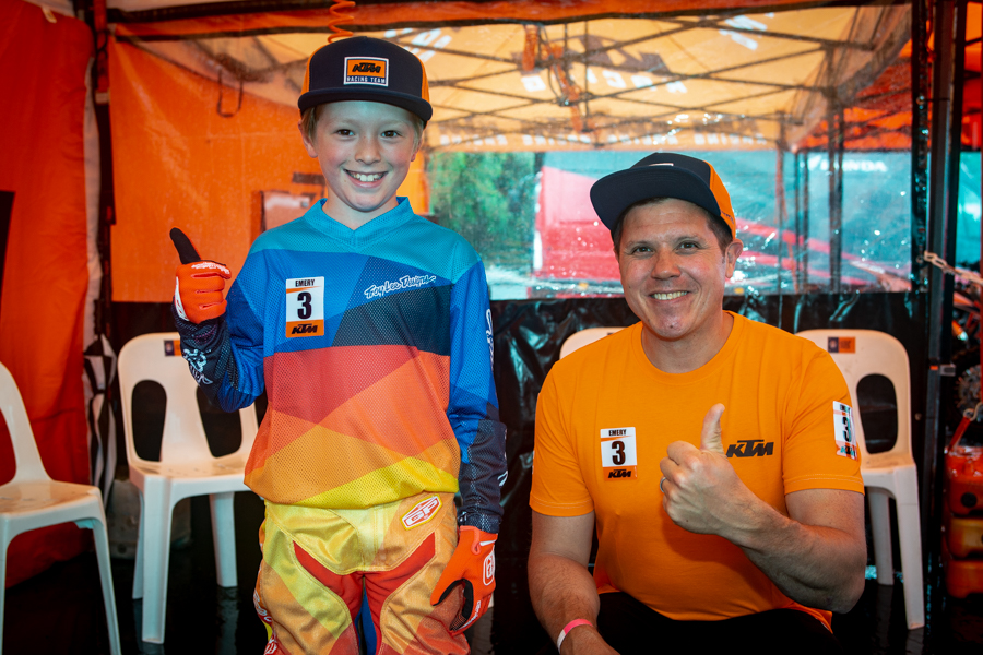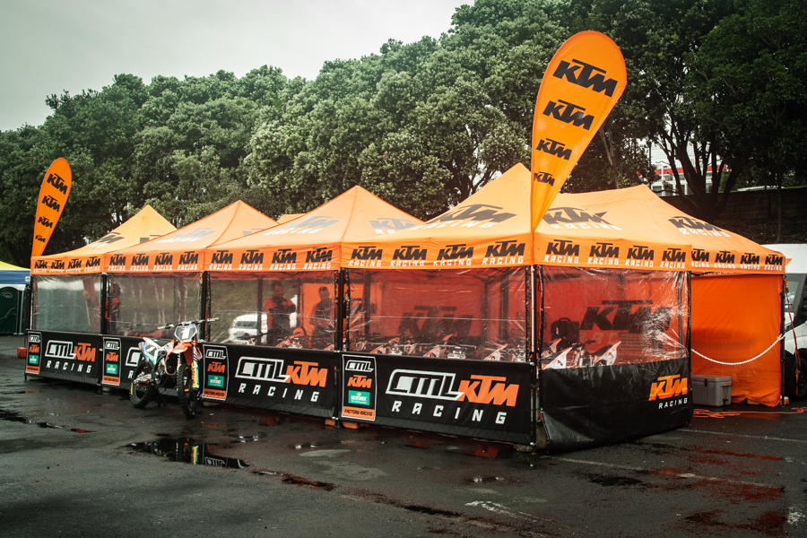 Even with heavy rain throughout the morning, there was nothing that could dampen the spirits of the wide-eyed riders who had travelled from all over New Zealand for the Factory Racing experience. The weather gods smiled down upon us in the afternoon, with sunshine breaking through the cloud cover as track workers peeled back the plastic on the circuit, cleared all the standing water and remodelled some of the technical supercross track so the show could go on.