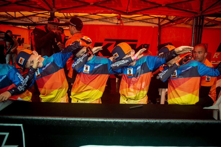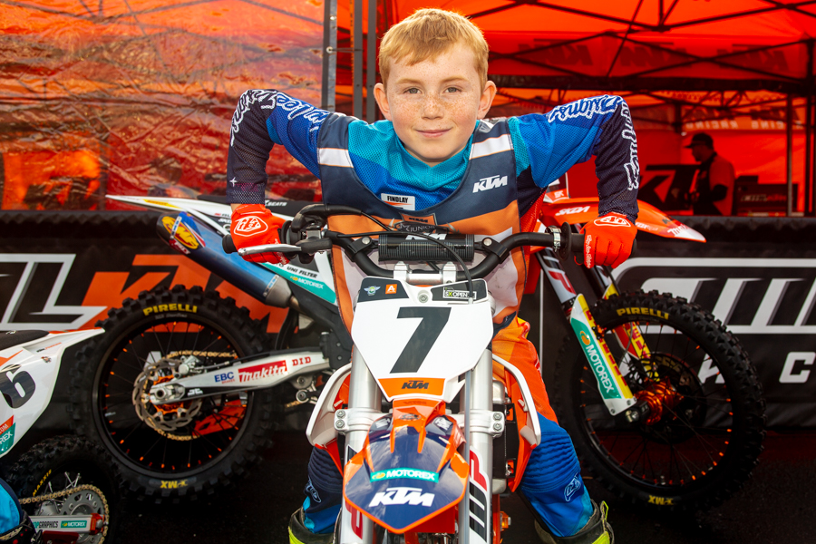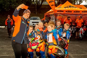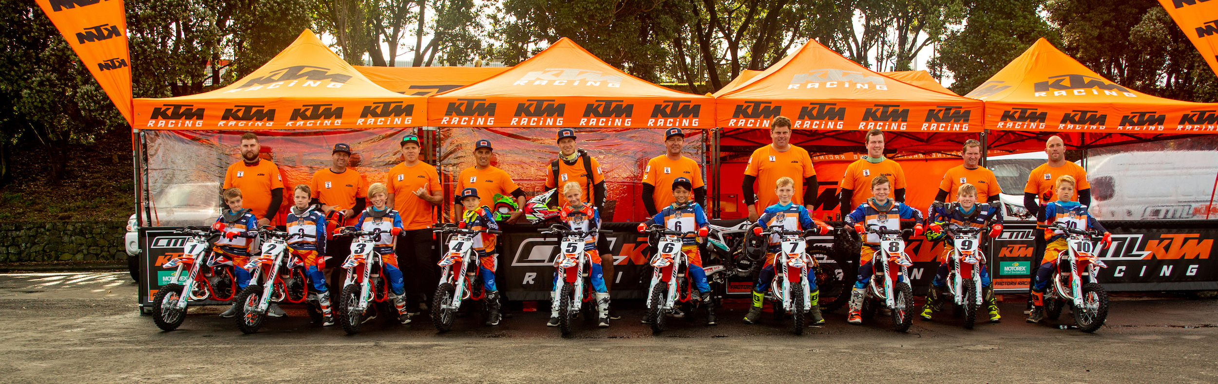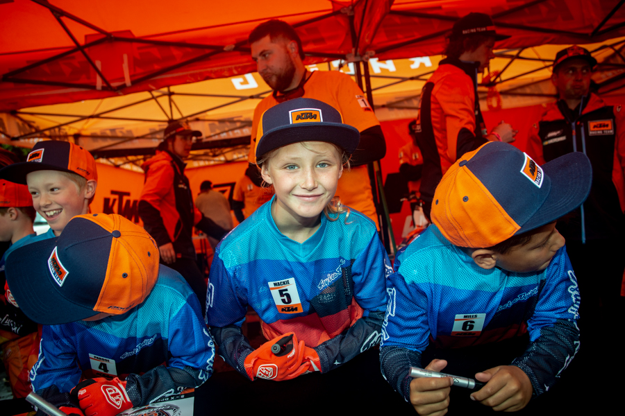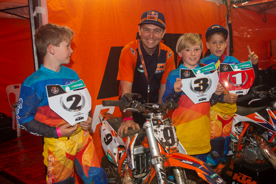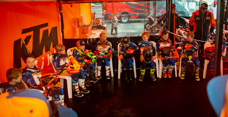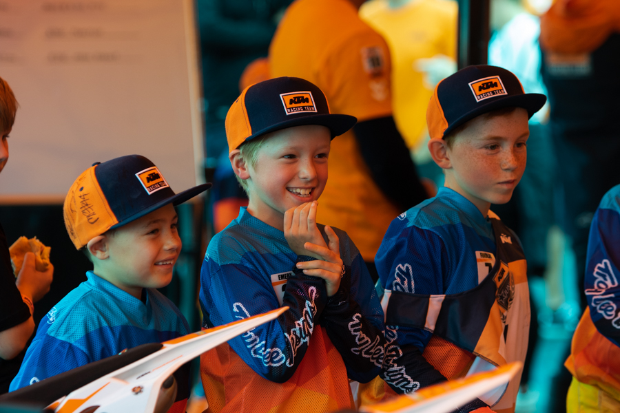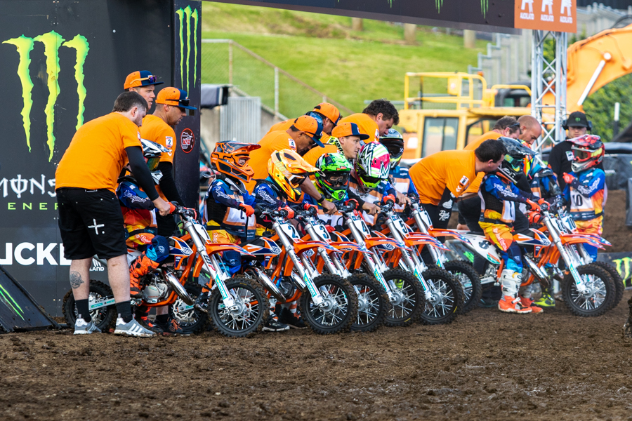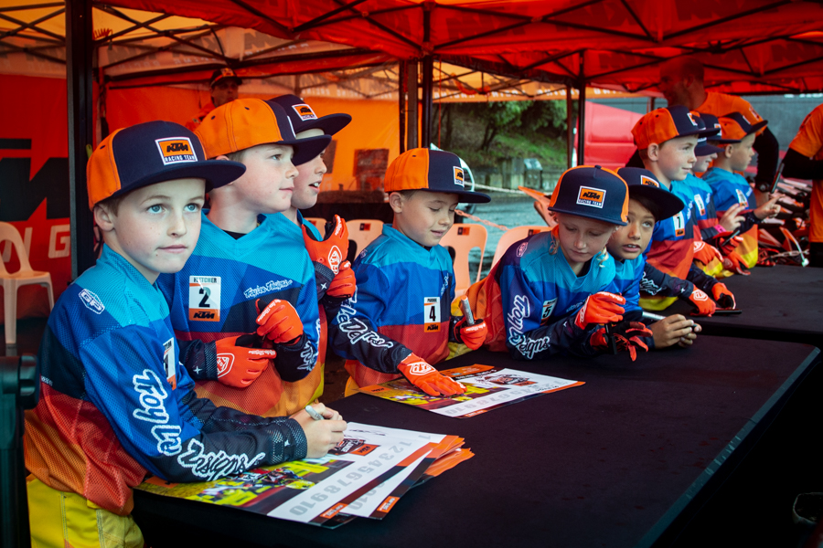 For the first time in New Zealand, KTM in conjunction with AME was able to offer the KJSC experience, a unique opportunity for aspiring young riders to truly walk in the shoes of a professional supercross rider for a day. Riders were welcomed to their pit set-up upon arrival where they received a KTM PowerWear Pack, got dressed into their Troy Lee Designs riding gear and took part in a team briefing, rider signing session and pit party experience. Riders were introduced to their KTM 50 SX bikes and familiarise themselves with their surroundings.