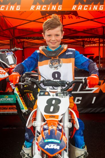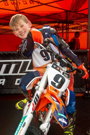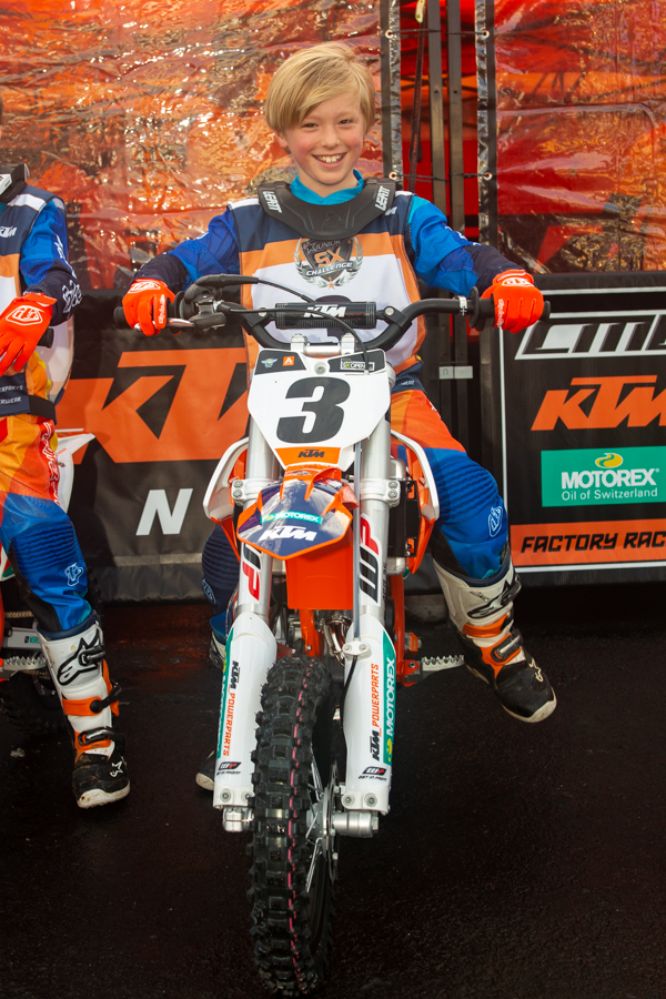 As the KJSC riders made their way to the stadium floor the excitement built. The riders appeared on the starting line with their bikes and to the roar of the crowd headed into their first practice session. All riders navigated their KTM 50 SX’s around the muddy conditions with precision as they took every jump, rut and berm in their stride.