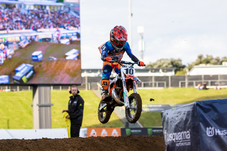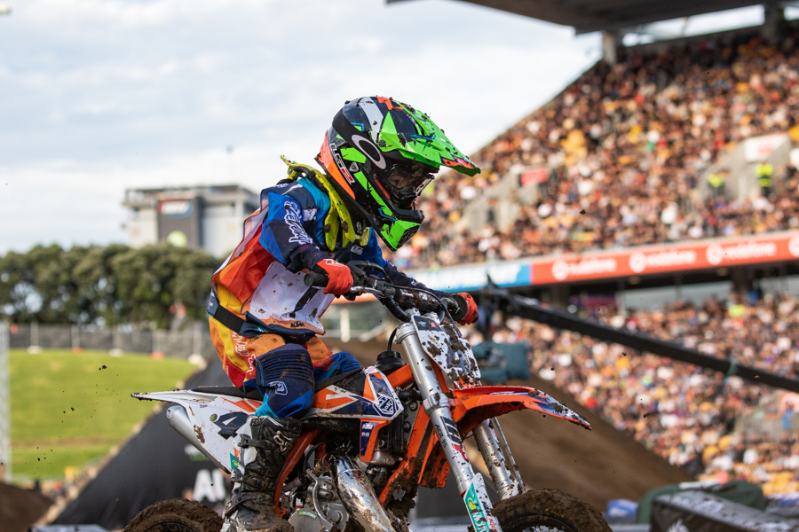 Mt Smart Stadium in Auckland was packed to almost capacity for the inaugural S-X Open Supercross on Saturday and while more than 21,000 noisy race fans in attendance were thrilled to witness the spectacle of international supercross action, it was perhaps the 10 young Kiwis – between 7 and 8 years old – who had signed up to take on the 2018 KTM Junior Supercross Challenge (KJSC) who expressed the most joy.