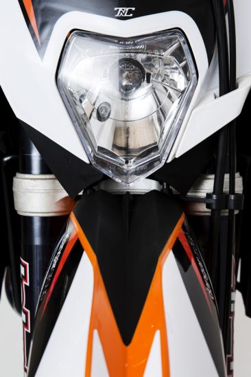 The SE has an unappealing front end so we removed the stock headlight instrument cluster and guard. The guys from Highway Performance Bikes in Rockdale assisted me in getting the front end of a 2014 500 EXC and with a few tweaks it fitted really neatly.