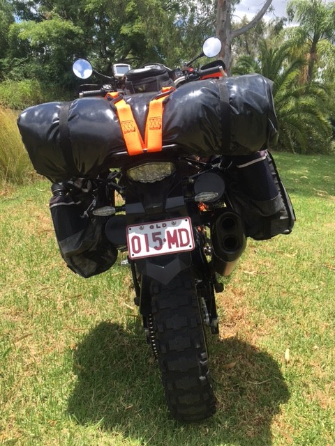 As I was to be a support rider for the ADVX, setting up lightly was priority. So a light weight swag was designed over the old canvas style I had used forever which saved several kgs carried high on the bike.