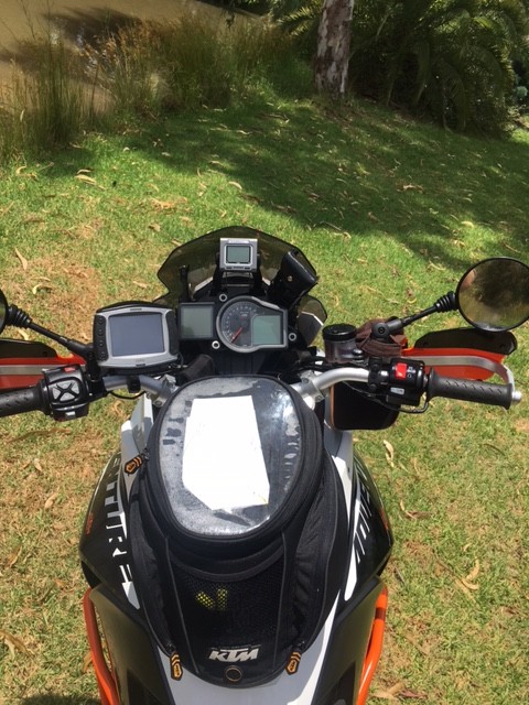 Grip warmers are the standard KTM items that use the analogue dash and controls. I put a glasses case behind the fairing to save loosing glasses at servos as well as a pocket knife multi tool zip tied to the bar riser for quick access.