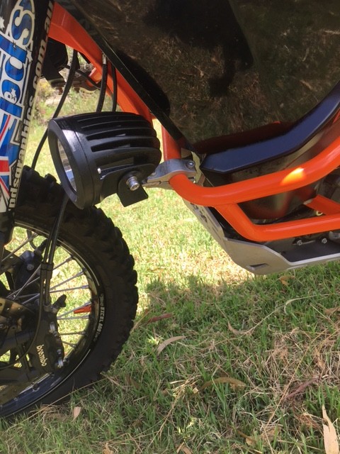 From past experience, I knew we would definitely be doing some night work in the support role, so local business Dieselectrics was called upon to source some good LED spotties and to build a wiring harness to not interfere with the Canbus system on the KTM.