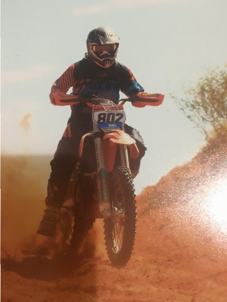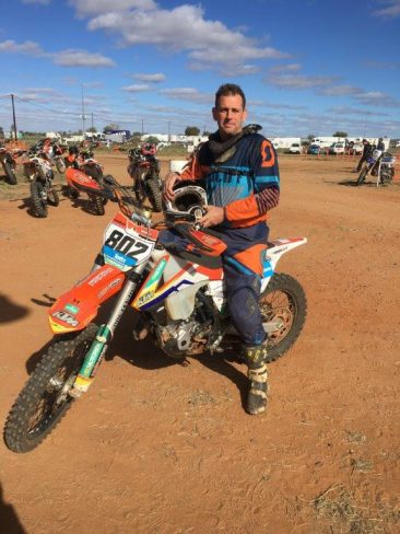 I started off racing MX and Enduro and have won state titles in Victoria and Northern Territory, and I also finished 4th overall in the MX Nationals Vets 40 + class in 2014.