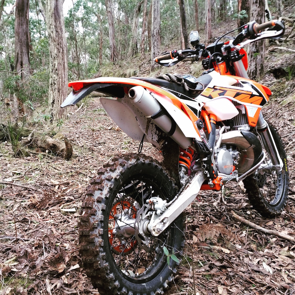 A few months ago, before I bought the new bike, myself and friends went to the Dirt Bike Demo Day which was held at Calder Park Raceway. This allowed you to have 5 rides on brand new bikes of your choice on 15-minute enduro loop. I rode the new 350 four strokes and the 300 two strokes and it was a perfect day to really find out what bikes you liked over a proper enduro course. Both the new KTM 350 and 300 were unbelievable bikes and you could not go wrong on either one. Our blue bike riding friends from work all said the same thing afterwards – they are going to get a KTM!