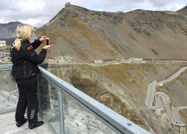 Over the next few days we rode away from the rain taking in the Stelvio Pass – what superlatives haven’t I used – please apply here! The views were amazing, and Quinton decided this was the place to get the ultimate Facebook banner shot. Whilst trying to get the shot for Q, I saw my glove being gusted off the bike and down the Stelvio. 10 more days in freezing conditions with one glove! Someone must be able to help!