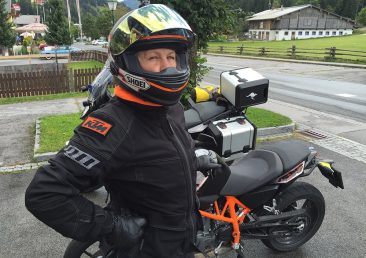 I decided I could handle the roads and needed a bike of my own. The dealer in Wels was very helpful, letting me change my original booking of an RC390 to a KTM Duke 690 – I thought the seating position would be better for seeing and recording the views (helmet cam). I found the tank affected the seating position quite a bit, being a much narrower design than the RC390 and making it feel more of a prim and proper bike … that is until you throttle up, then I felt the difference of the 690.