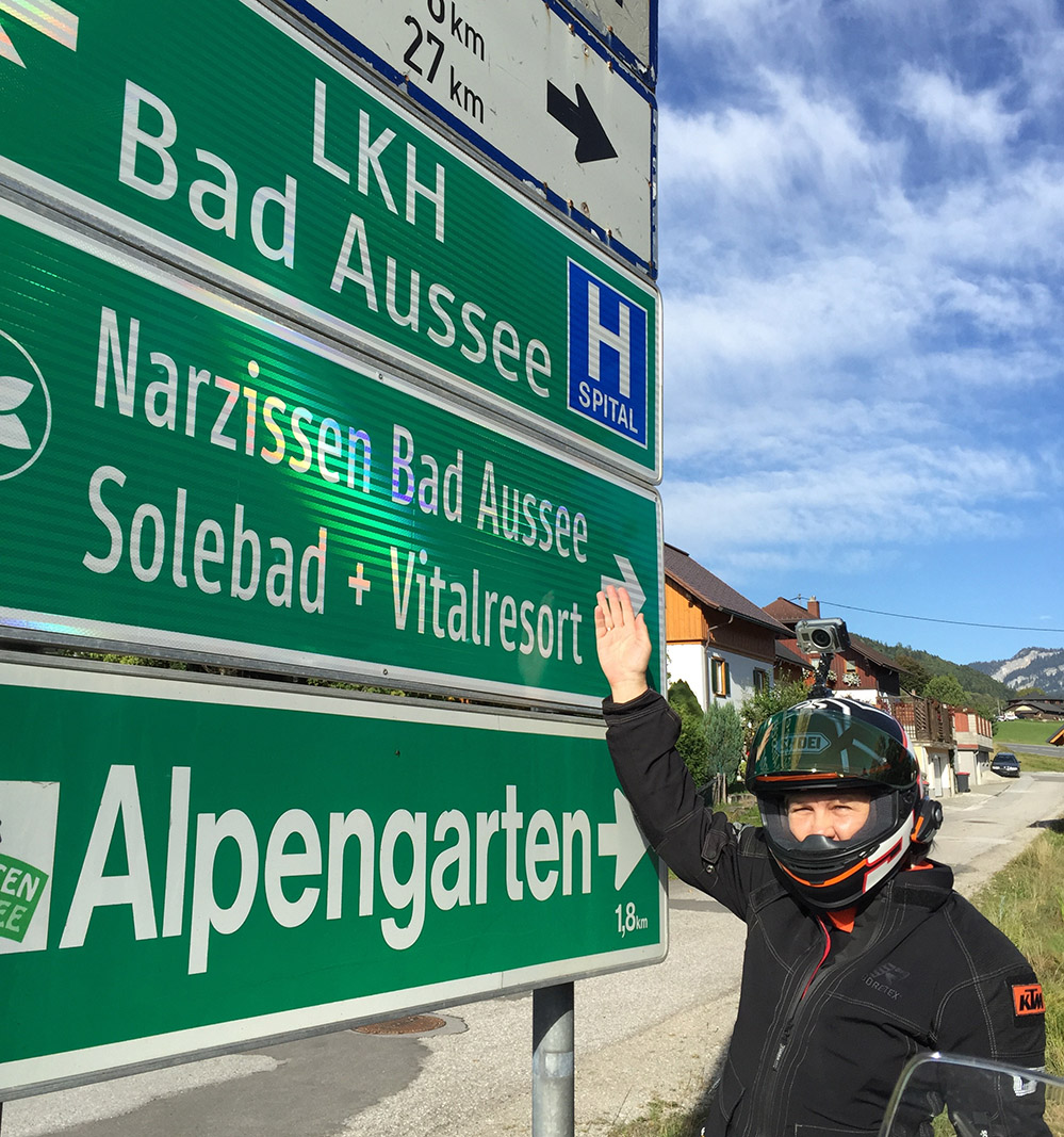 Although the passes were the real highlights on our trip, the roads near and around the lakes were great as well with long, long tunnels, twisties and amazing views. And then of course there was the food and the cool names – what Australian can go over there and not stop in Bad Aussee (Aussie?) just for the photo op at least!