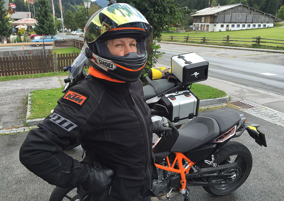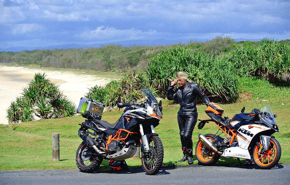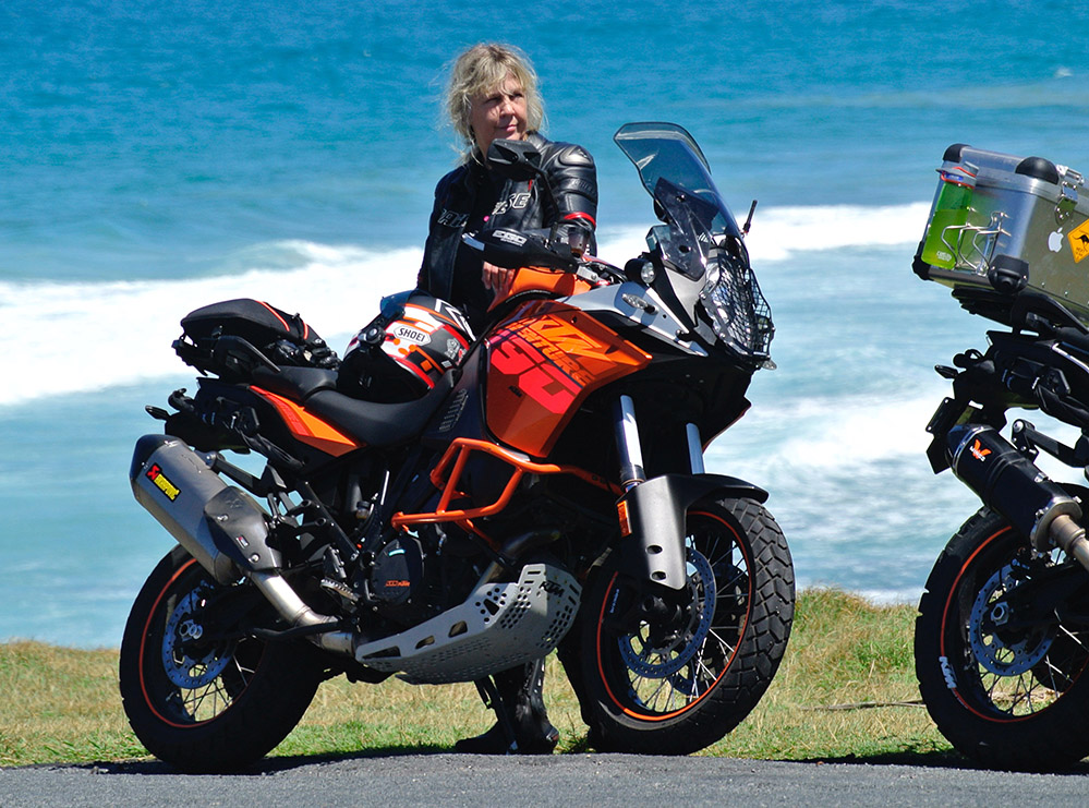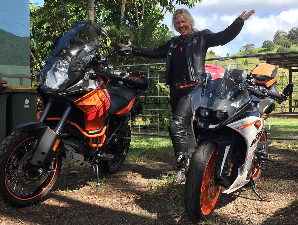 She’s over 50 and doesn’t care who knows it, owns two KTM’s, considers customisation on her bikes absolutely essential, started her own ladies ride group on the Gold Coast, ridden a 690 Duke around the Alps in Europe and considers Laia Sanz to be her heroine. Sylvia Marais is one cool chick.