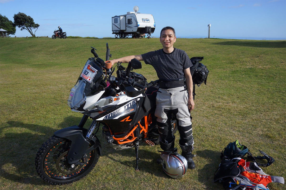 The inaugural KTM New Zealand Adventure Rallye “Coast to Coast” in December 2016 was special for many reasons – – launching the Rallye concept into NZ, having Chris Birch set the course, and bringing 80 KTM adventure riders together for one week. But there was one rider who attended that made the event that little bit more unique and that was Takashi Tsujiguchi who shipped his bike all the way from Japan to participate!