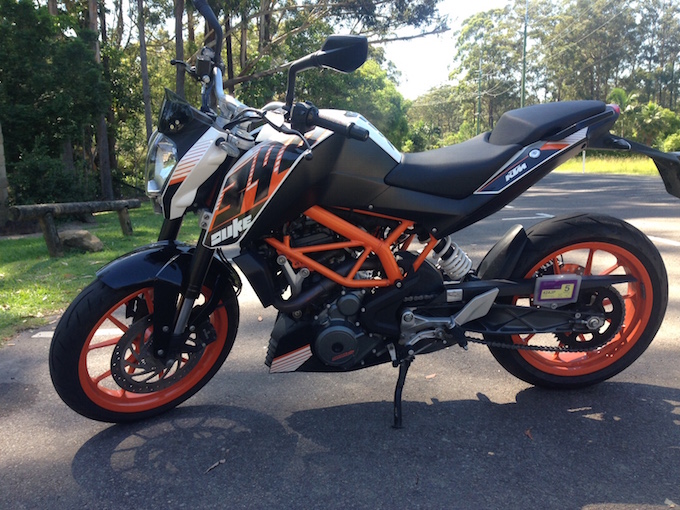 Even before riding KTM’s naked answer to the LAMs market, there were some major aesthetics that attracted me to this neat little piece of engineering. These things are sexy! The angular styling of the tank and bodywork is right up my alley. The overall length of the bike is also a major attraction, it’s so short! The bodywork finishes around the same spot as the rear axle. For someone who is simply not accustomed to the road, having a physically small bike was a huge selling point. Finally, who could go past that bright orange colour? For a true KTM lover, orange is definitely the new black. With bright KTM orange rims and laser-cut steel trellis frame, I was hooked.