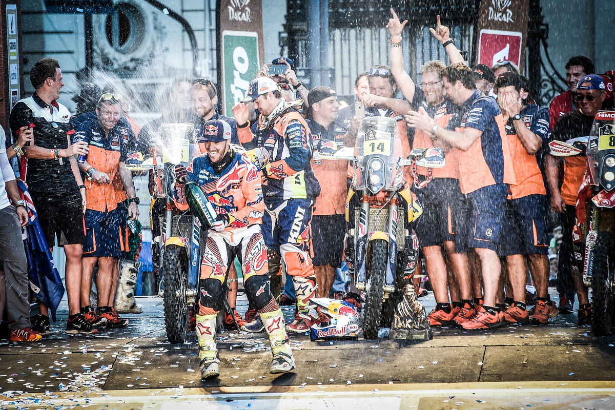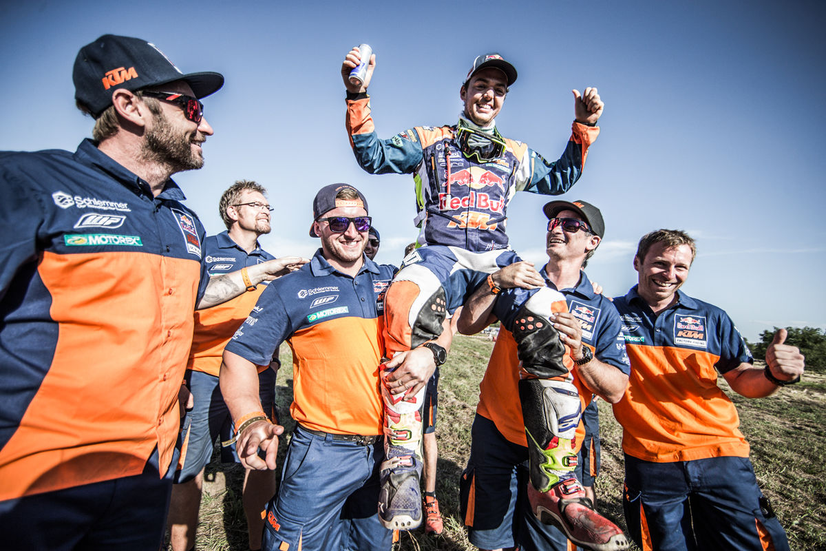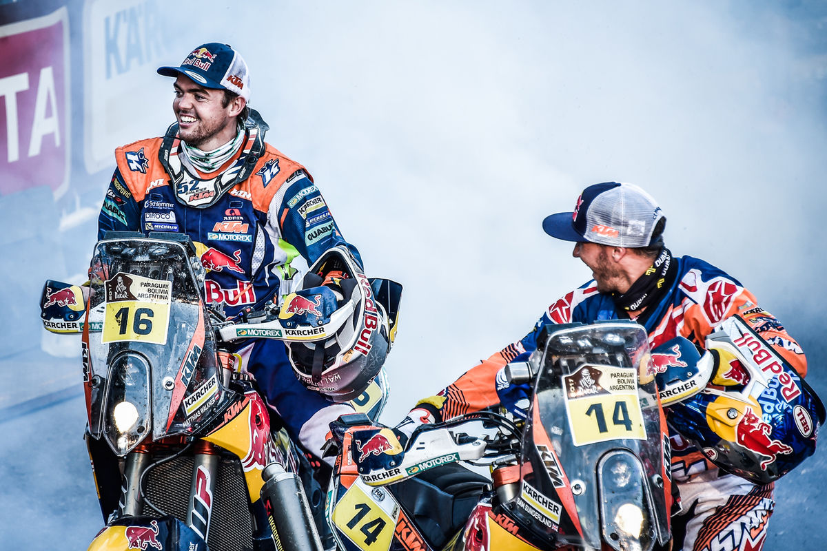 Sunderland and Walkner stepped up and delivered for the Red Bull KTM Factory Racing Team after teammate and 2016 winner, Toby Price of Australia, went out in the fourth stage after crashing and breaking his leg in four places. After surgery in La Paz, the Australian desert champion has now returned to home with the aim of being back on his KTM 450 RALLY machine in four months.