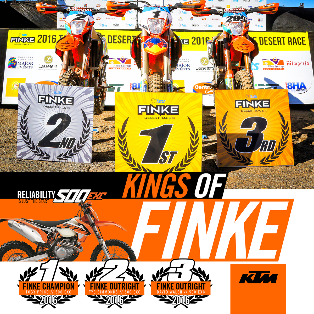 KTM Australia’s Desert Racing Team today achieved its most glittering finish yet in the most important event on its calendar; the Tatts Finke Desert race.