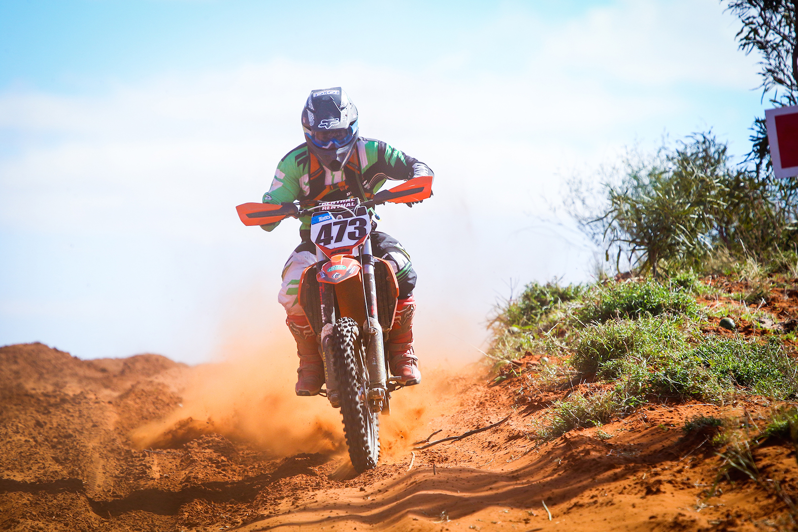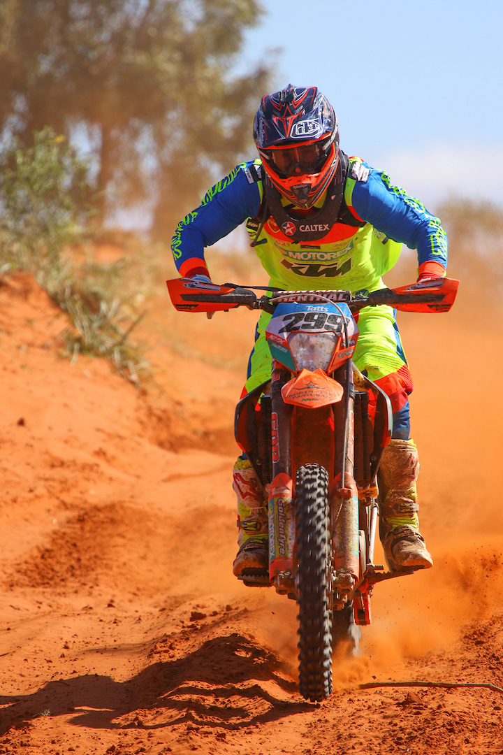 Alice Springs local Luke Hayes powered his KTM 500 EXC into sixth outright, while South Australian Nathan Trigg also cracked the top 10 outright on his way to winning the 251cc and above 2T class aboard his KTM300, leading home similarly-mounted Billy Barry and Benjamin Russell.