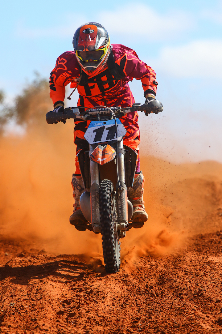 Victorian Cody Ryan powered his KTM 250 SX to victory in the Up To 250cc Two Stroke class ahead of another KTM, that of Dalton Byrne, from Thargomindah, Qld.