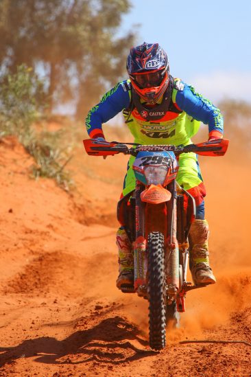 Jack Simpson – “I nearly cracked the top-ten! I’m a little bit surprised, but then I did put a lot of effort into pre-running and training so all my preparation paid off. This race is just different, you can’t explain it, you’ve just get out here and do it, it’s that fast. You don’t even touch third gear, it’s just fourth and fifth the whole way. I had a real good run, I prologued 15th, and I played a bit of cat and mouse with a 450 on the way down, and then on the way back with Nathan Trigg who finished tenth outright. I’d catch ‘em, then they’d pull away, over and over. But that’s what happens on the little 250. But the bike went great, 460 kays of flat knacker on a dead stock KTM 250 SX-F. Hard work on a little engine, especially with me revving it, but it made it, no problem!”