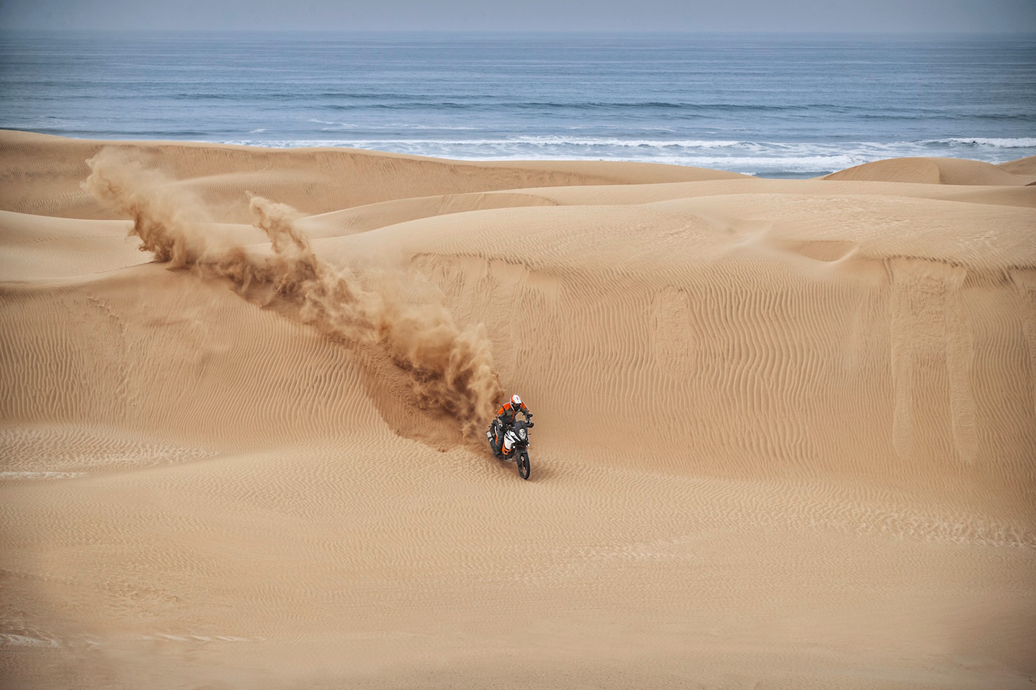 The KTM 1090 ADVENTURE R stares down anything in its path. Bespoke WP suspension, offroad wheels and a tough yet fuel-efficient engine are ready to rumble. Decades of rally raid victories roar within. As shrewd as it is chiseled, this bike uses the same state-of-the-art technology as the KTM 1290 ADVENTURE R and even though its engine capacity is smaller, it’s still big on power: 125 hp (92 kW). That’s 23 more than Fabrizio Meoni’s Dakar winning 950. The world is yours – Devour it.