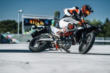 Powering the KTM 690 SMC R is the latest generation LC4 engine; the world’s most powerful production single-cylinder engine dishes up a devastating 74 hp and 73.5 Nm of torque. Getting the most from this performance in all situations is a suite of rider assistance systems. Two ride modes – Street and Sport – cornering ABS, lean angle-sensitive motorcycle traction control (MTC), motor slip regulation (MSR) and Quickshifter+ are new to the game, with the familiar Supermoto ABS mode aiding rear slides with front-end confidence. All this is packaged in an updated chassis and new subframe, supported by the latest generation fully-adjustable WP APEX suspension and wrapped up in slimmer, sharper bodywork. Better still, the fun goes further with a 1.5-liter larger fuel tank.